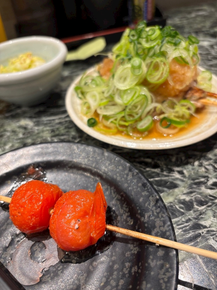 とまと串とおろしポン酢つくね