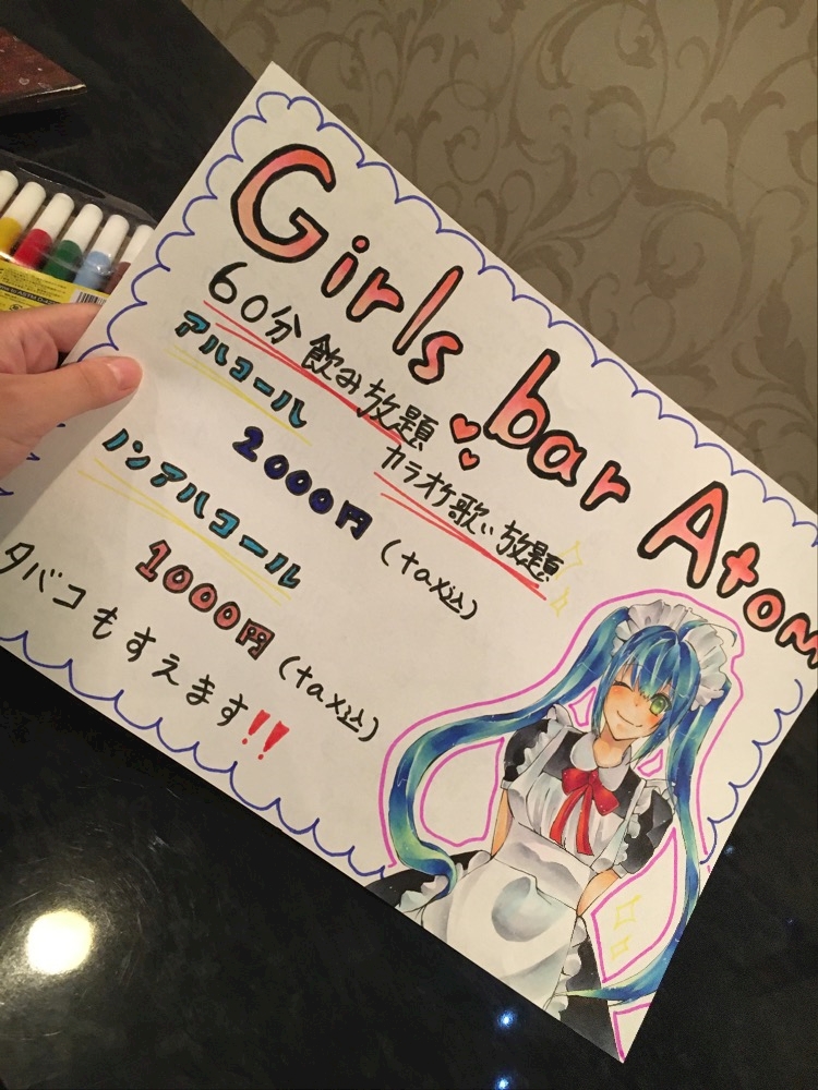 昨日みんなで外にたつ時持つ看板を作ろう!って話になって、私はイラスト描きたかったので持ち帰って宿題で作ってきました!結局文字が間に合わなくて出勤して続きしてましたが