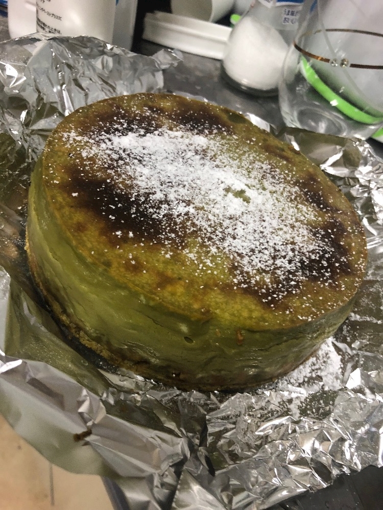 これは抹茶のチーズケーキ!!味見したけど美味しかった🍵
