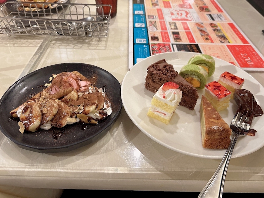 そのあとデザート食べ放題に行って友達と皿にスイーツを盛り付けてはしゃいでました。