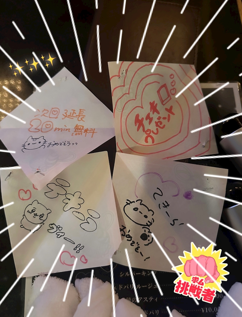 えまちゃんと3人でお話させてもらって大笑いできてちょーたのしかったです🥹ドリンクとご指名とお菓子も!!笑ありがとうございました🙏