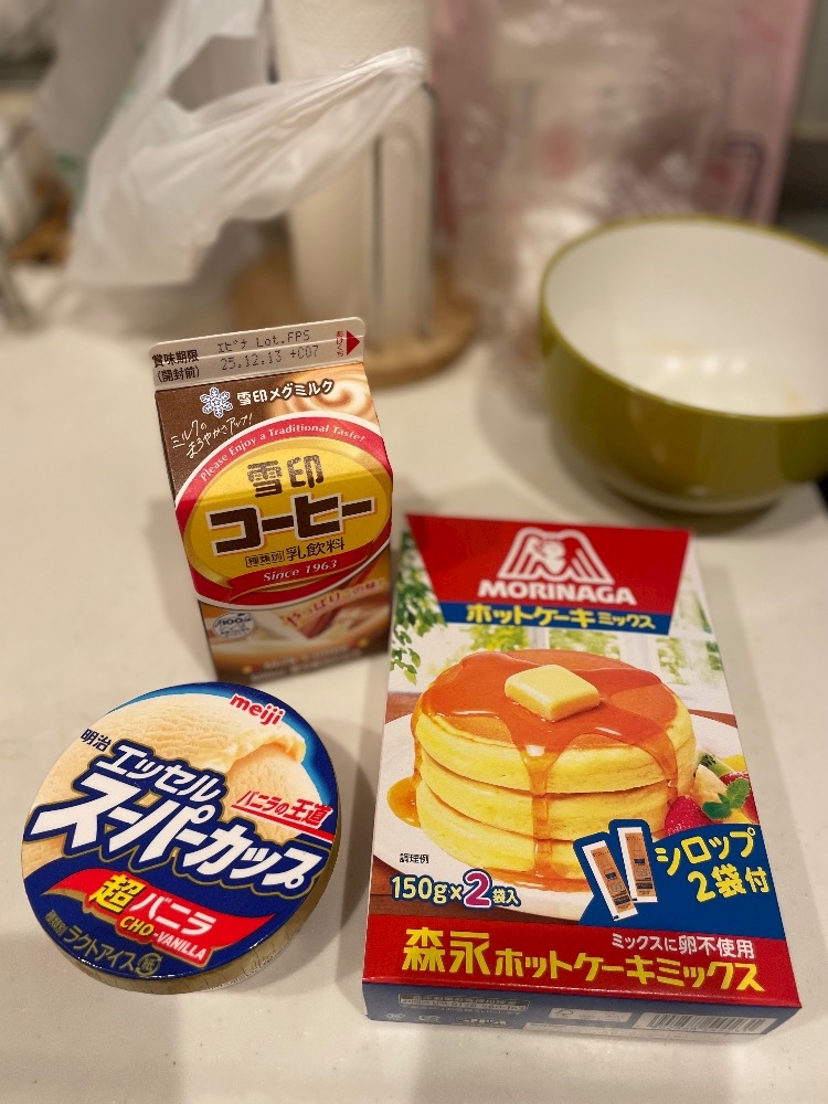 ホットケーキ、コーヒー牛乳で作ったら