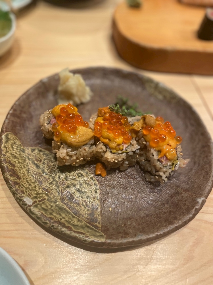 とろたく巻の上にウニとイクラが、、🥹🥹