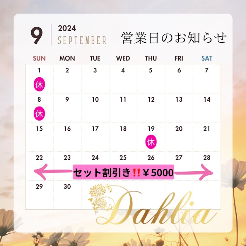 9月予定 - 🩵🩷️🍀🌸ありさママ🌸🍀🩷️🩵 - Dahlia・ダリア - 関内・福富町のパブ/スナック