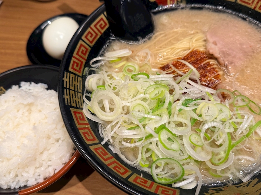 半熟卵とネギ+小ご飯も頼んでしっかり😂🍚✨
