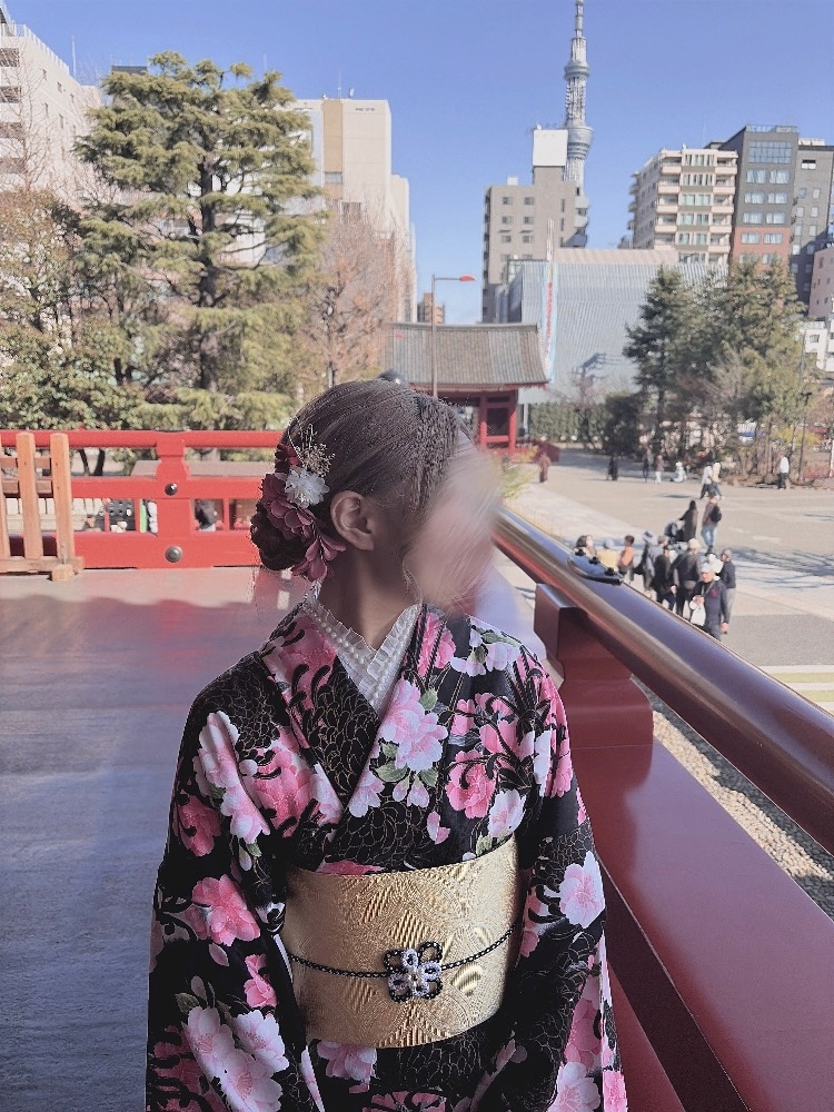 黒ベースの着物は一緒だけど書いてあるお花の色が全然違うのをふたりして選んだんですが!