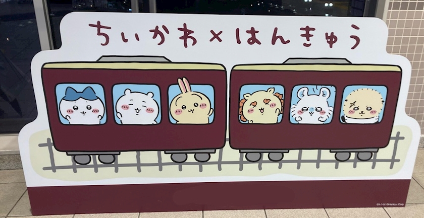 ちいかわとはんきゅうがコラボしてて、駅にパネルがあった🫶🏻️💗