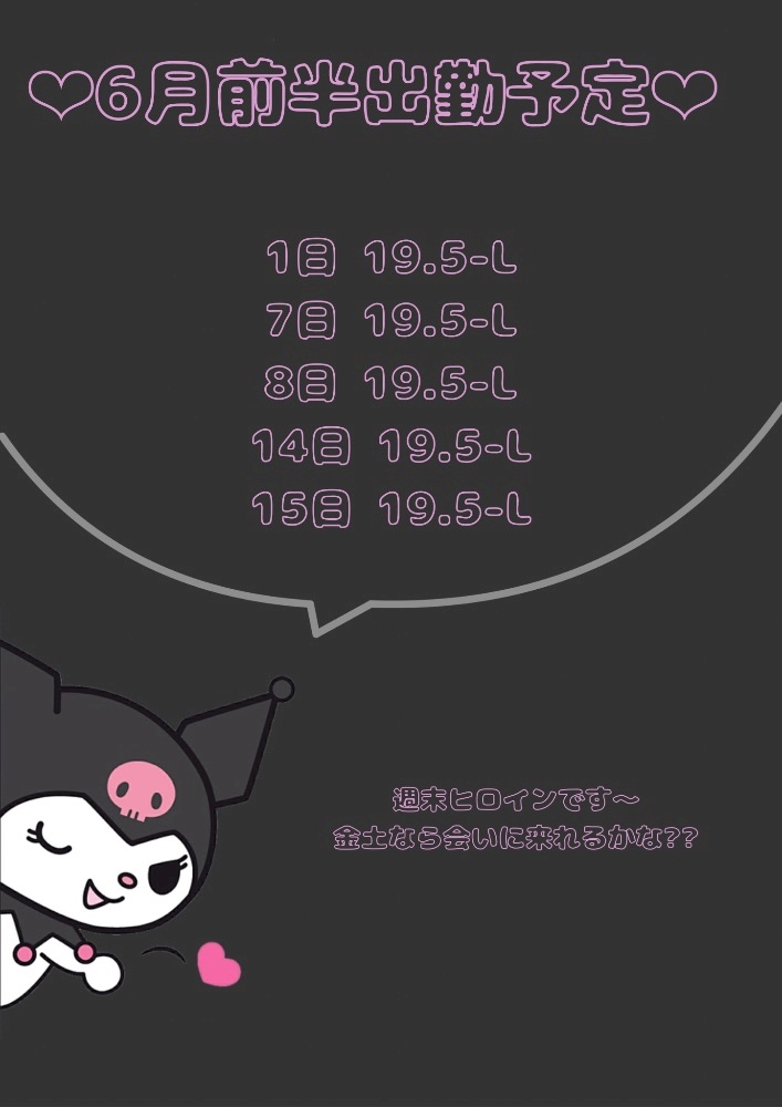 6月前半出勤予定です🐈⬛❤︎