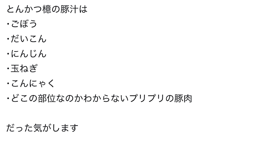 当時私が頑張ってとんかつ檍の豚汁を