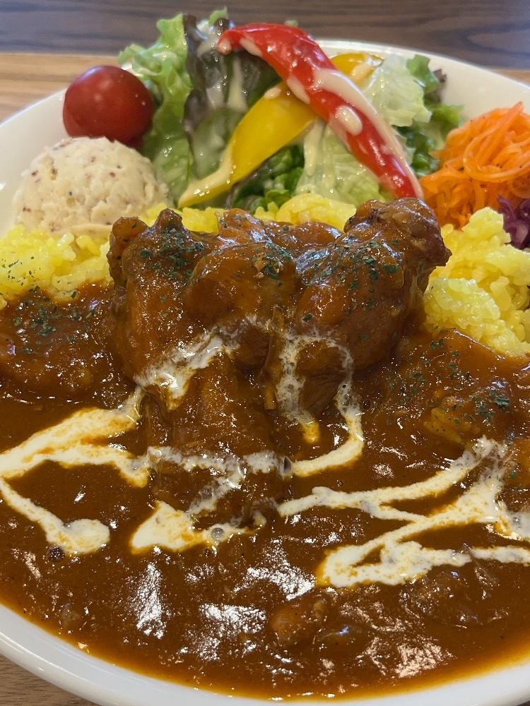 写真は地元のカフェで食べたカレー