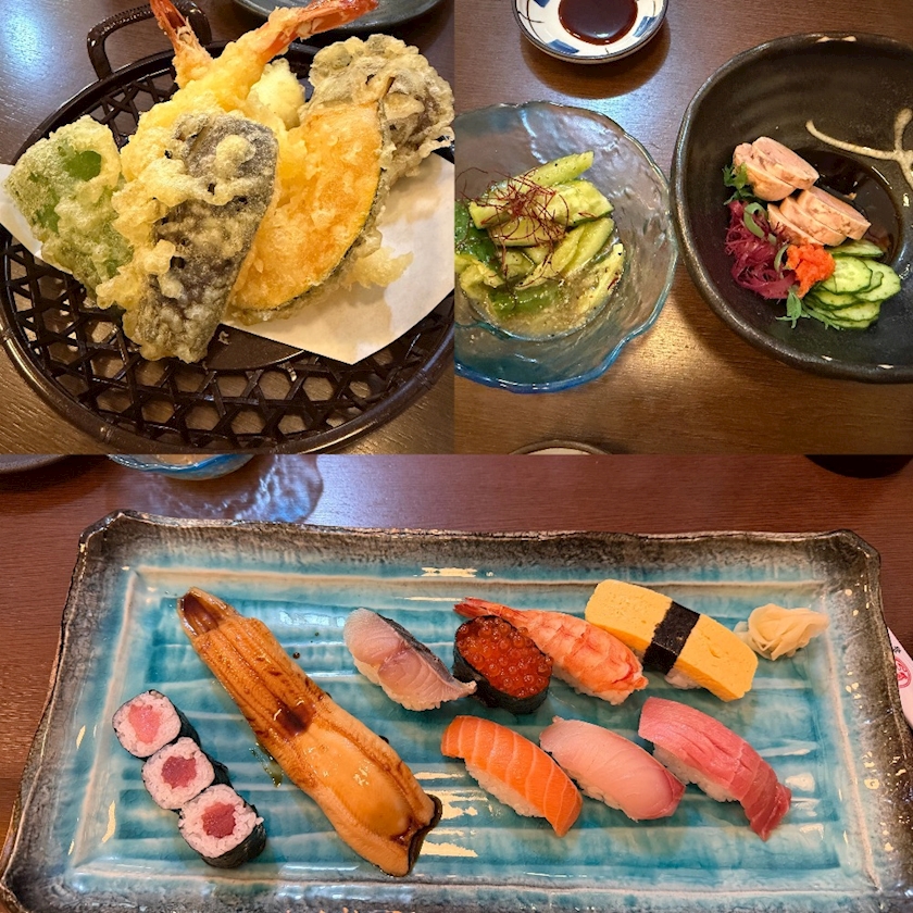 お寿司、天ぷら、あん肝、きゅうり
