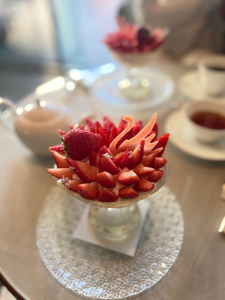 こんばんは!私フルーツがめっちゃ大好きなんですけど、今日は有名なパレスホテル東京のいちごパフェを食べてきました🍓❤️