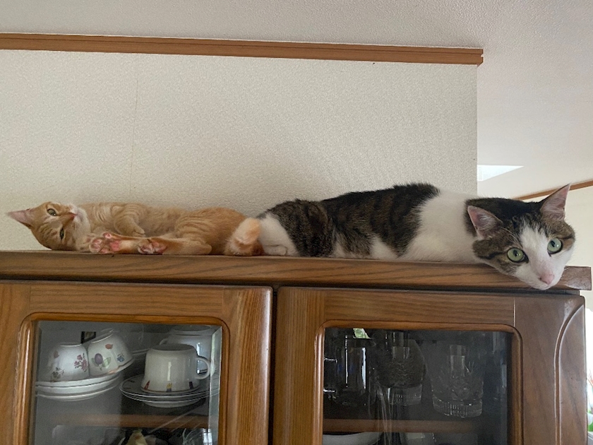 - 食器棚の上でぐでーんฅ( ˙꒳˙ ฅ)