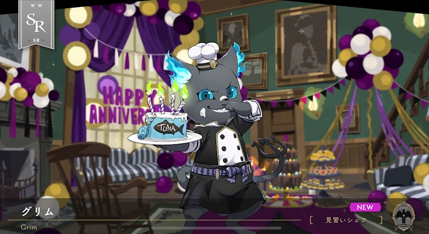 もうすぐ大好きなついすてが4周年を迎えるんですけど、アニバーサリー記念として主人公の相棒、魔獣のグリムくんが今年はシェフの姿になってカードに登場してめちゃかわすぎる🥺💜✨✨