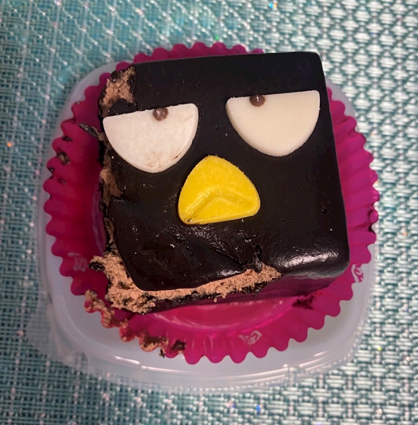 せっかくばつ丸の可愛いケーキ買ったのに、蓋を開ける勢いが強すぎて欠けた😭😭😭😭😭