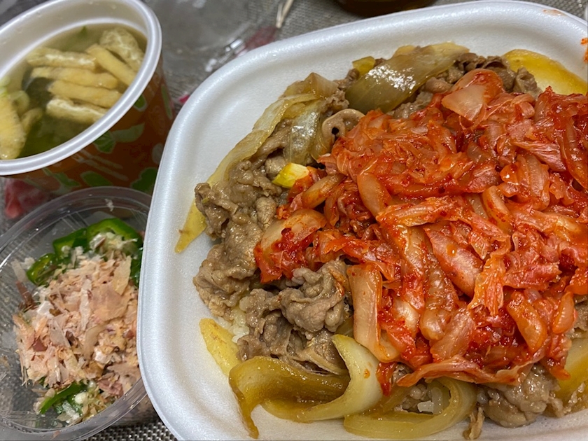 昨日2時頃家着いてグダグダしてから、お腹空いたのでカレーヌードルと諸々食べてたんですけど、その数時間後にまたお腹空いちゃってすき家のキムチ牛丼頼んじゃったよね😂