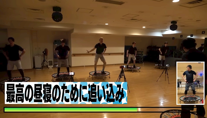 全力でトランポリンを跳んでいる動画を見ながら