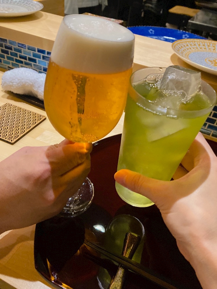 我々はいつも通りビールとお茶で乾杯🍻
