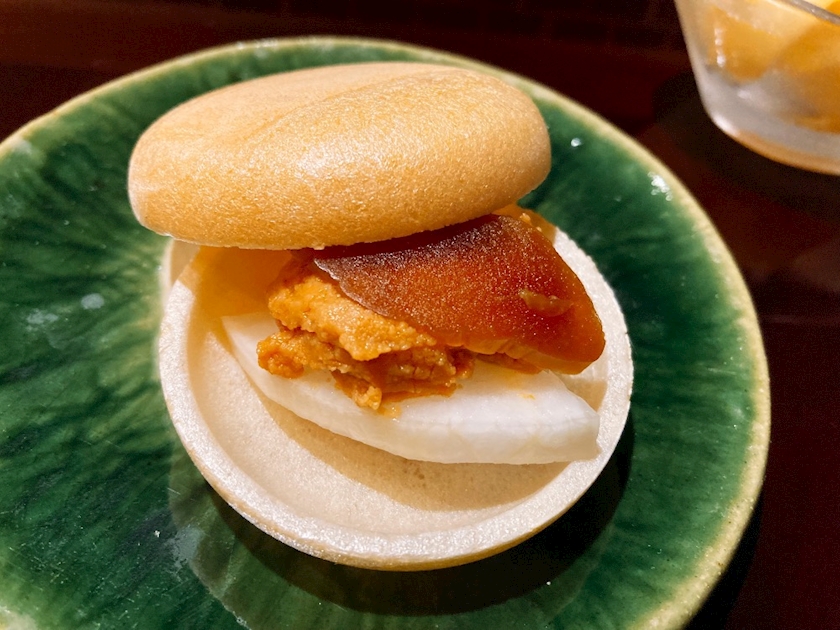 あん肝と奈良漬けのモナカ