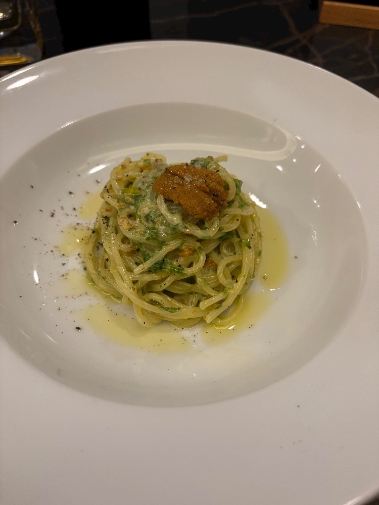 ウニ添えのパスタ