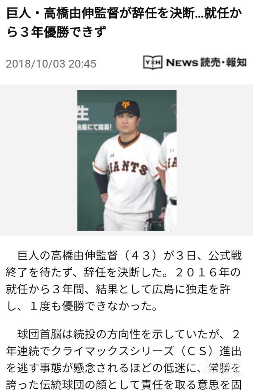 巨人 高橋監督が辞任発表
