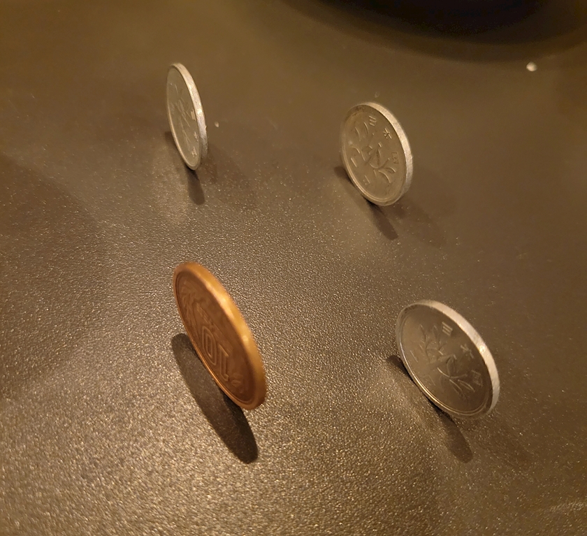 画像は一昨日お店で硬貨を立ててみようってなって