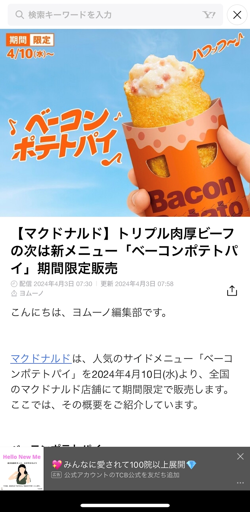 いっつもベーコンポテトパイは期間限定だから