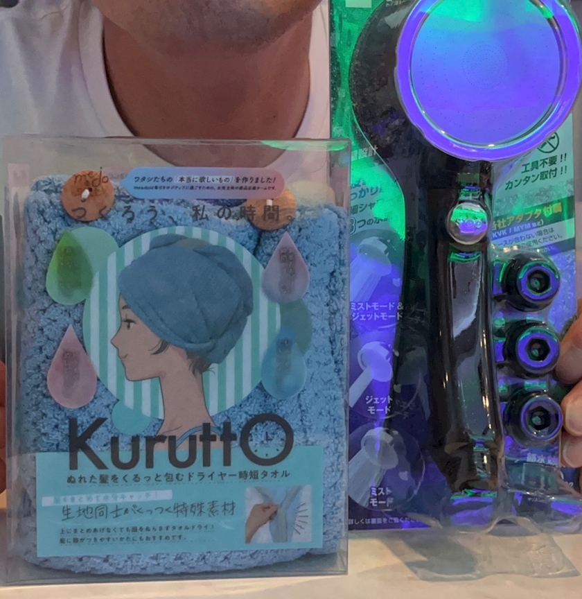 シャワーヘッドと頭に巻くタオル🥳