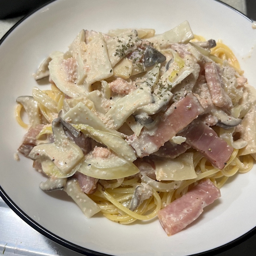 夕飯にパスタつくりました!