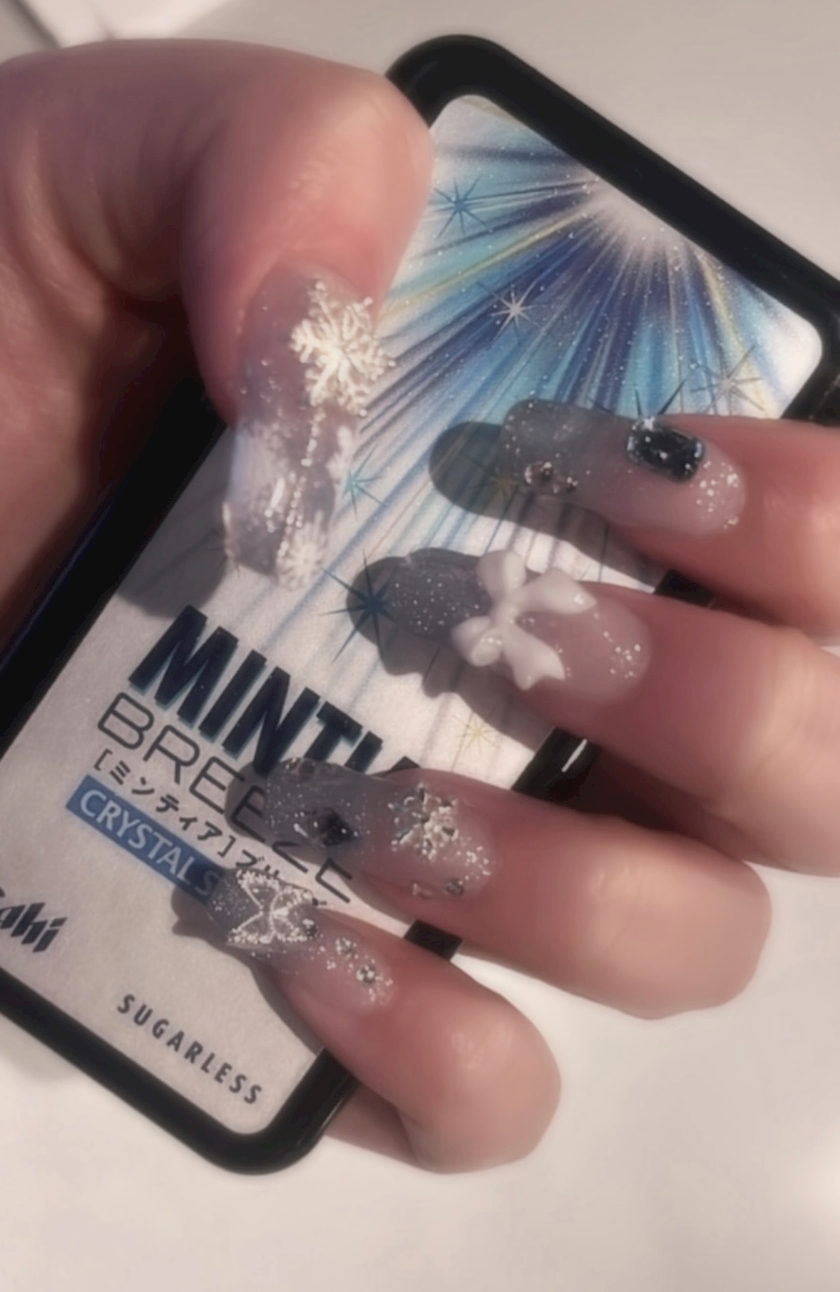 全然上手にできなくて今回は雪冬ネイルにした💅