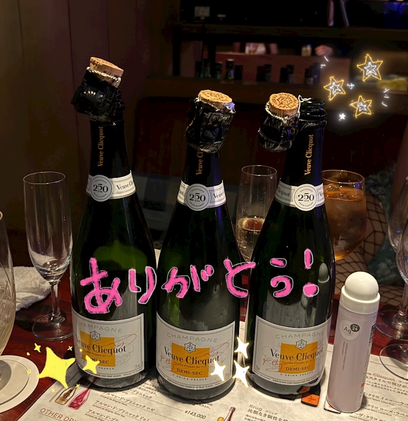 初めてのお客様の卓で頂いたシャンパンでもあり、最後も同じ銘柄で締めくくれて感慨深いです😭