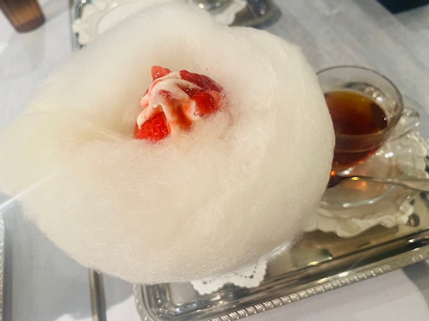 昨日ははかせちゃんとりあらちゃんとわたあめのパフェ食べに行ったよ