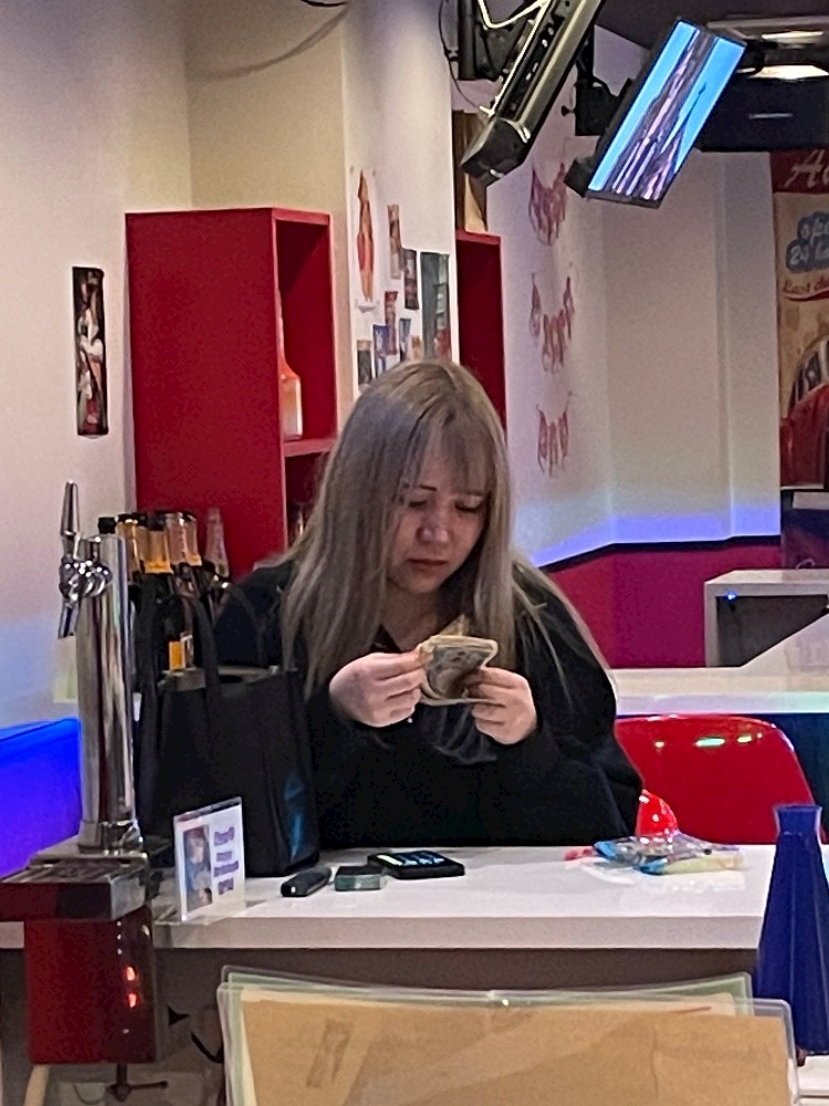 お金数える経理のお姉さん
