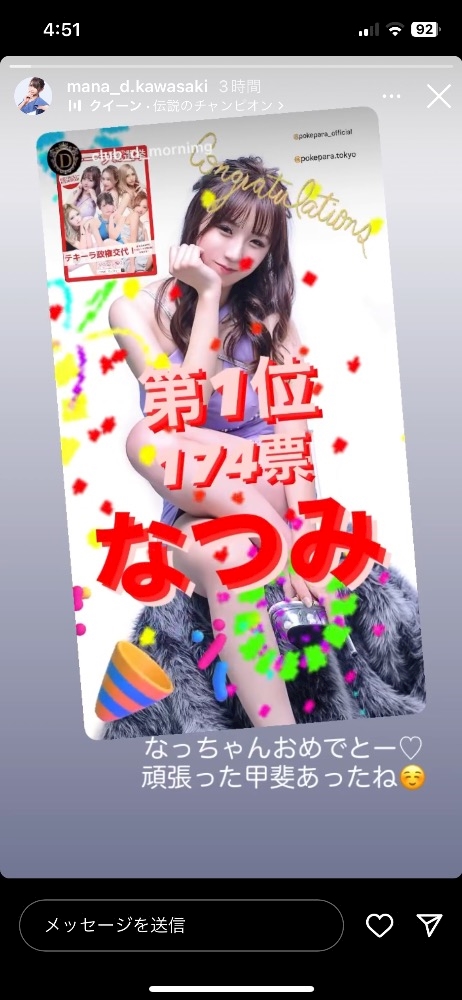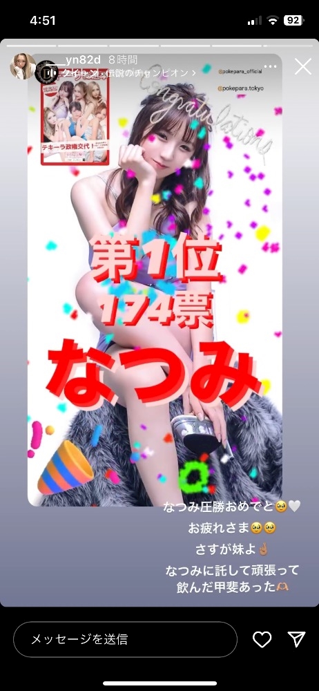 テキーラ総選挙結果 - なつみ - CLUB D -morning-・ディー - 川崎駅前の朝・昼キャバ