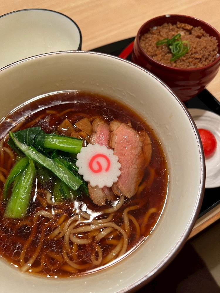 鴨そばに鴨そぼろ丼