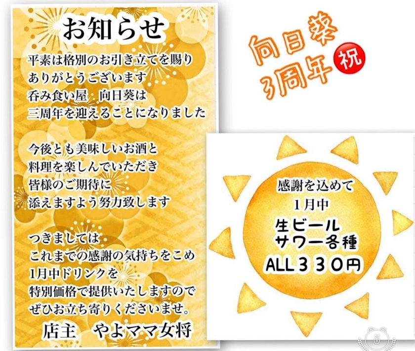 向日葵3周年有難うございます