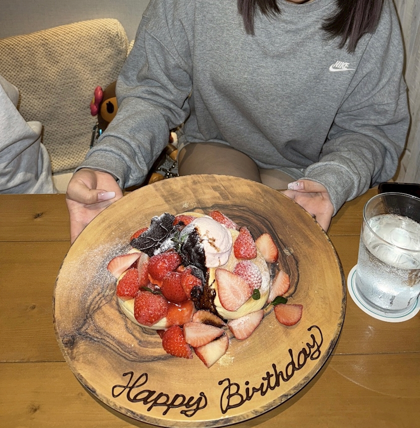 キャラメルバナナパンケーキ頼んで、