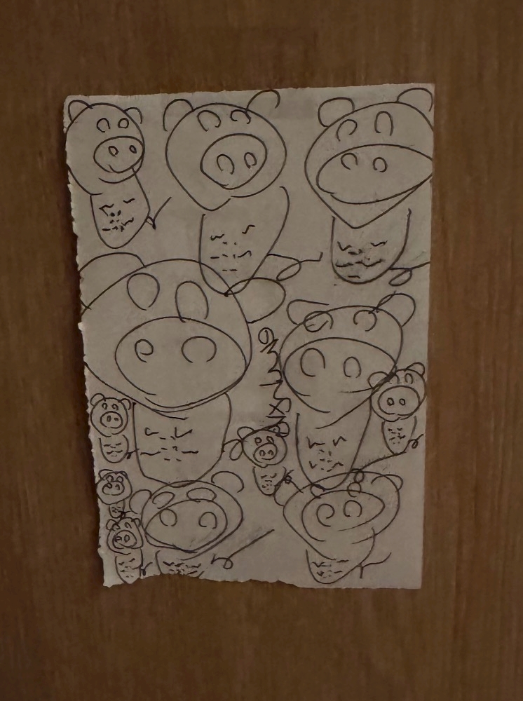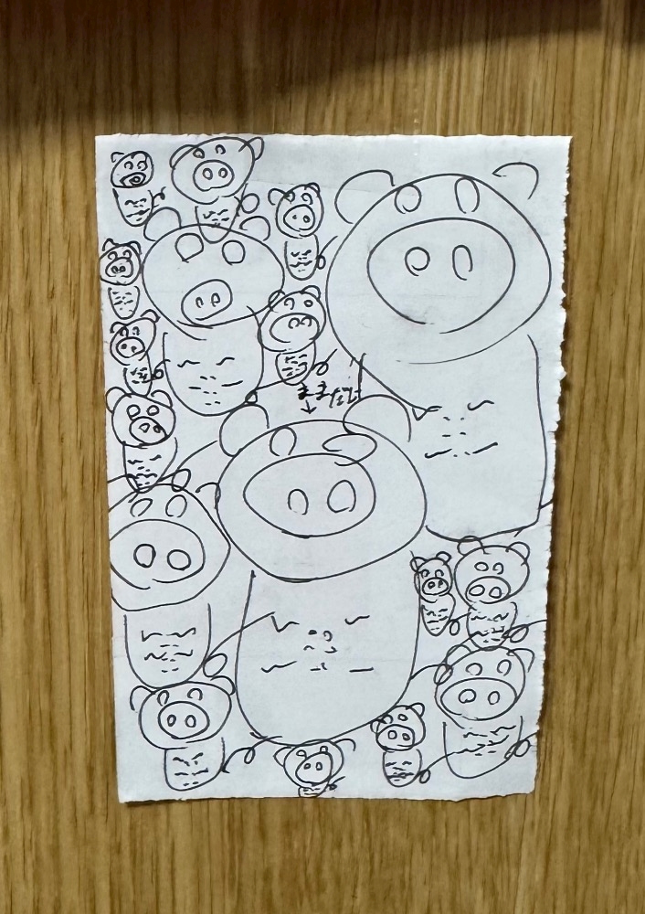 家に帰ったらドアに豚さんの絵が…