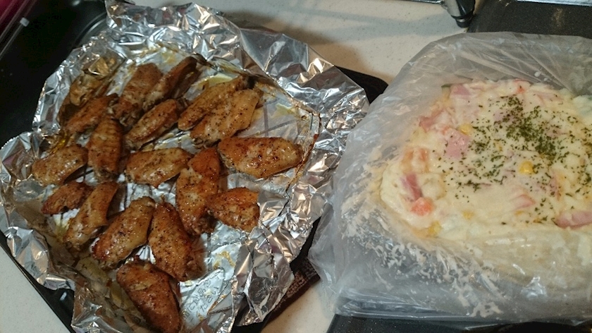 ポテトサラダ&手羽先焼き