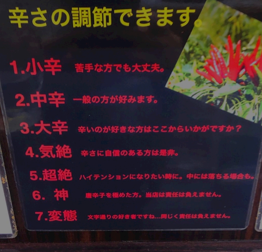 辛さを7段階からえらべるものなのですが