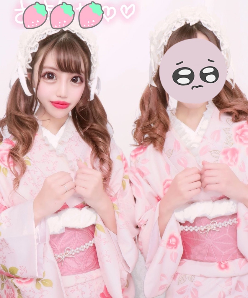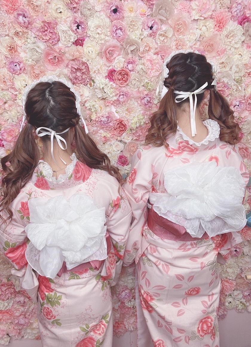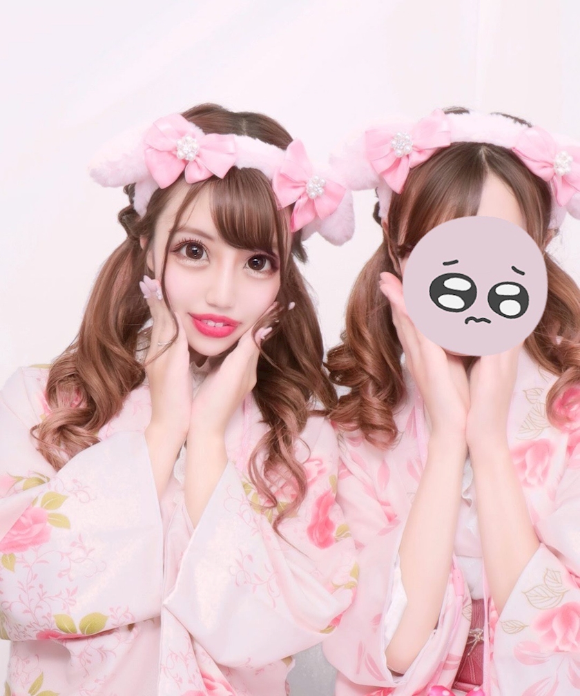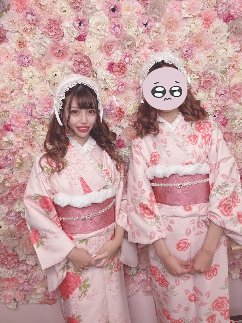 友達とピンクで可愛い着物をきました💖