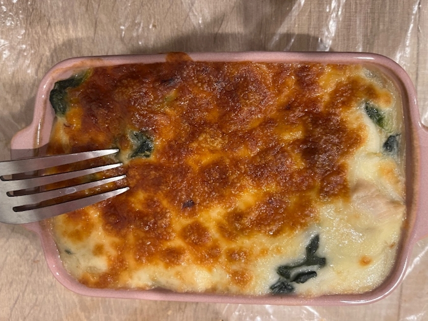 今日は貧血気味なのでほうれん草チキングラタン作りました~4日分くらい作った☺️☺️☺️