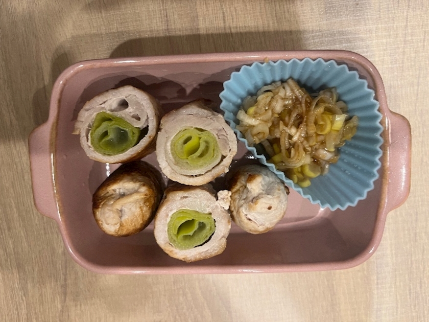 野菜詰め放題でゲットしたネギを巻き巻き🎵