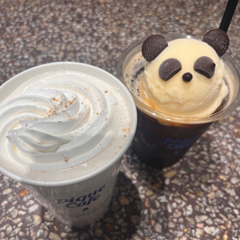 パンダの横のホイップ乗ってるカップが実はチャイで、まんまと頼んでしまった^_ .̫ _^