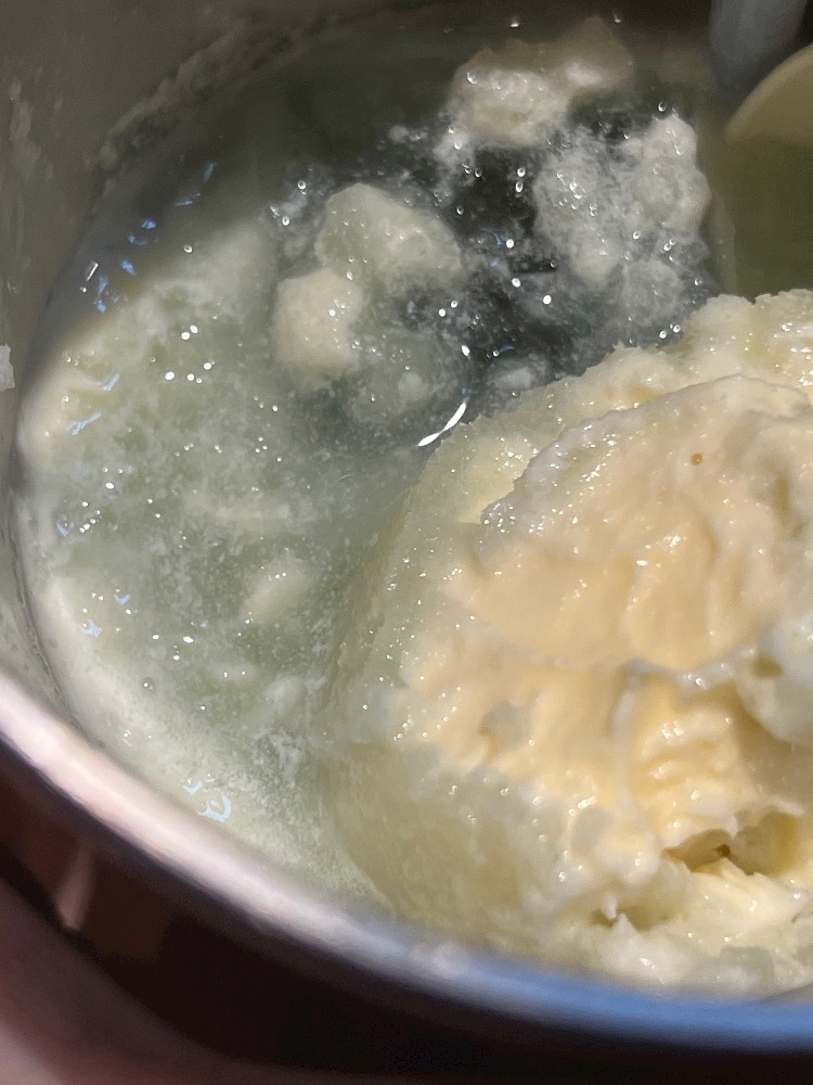 固まったソーダがアイスにくっついて