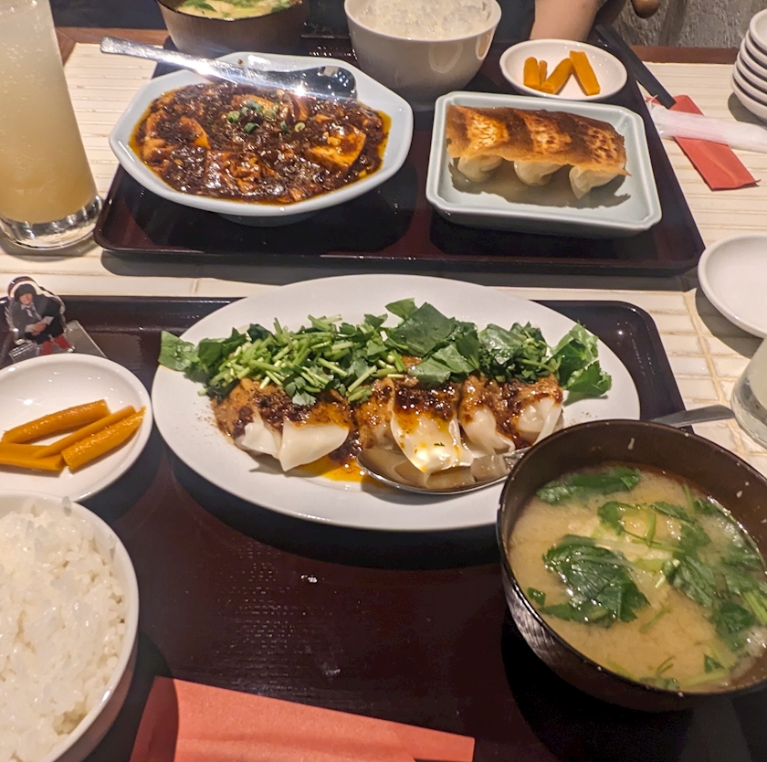 私が麻辣水餃子?定食で友達が麻婆豆腐と餃子定食