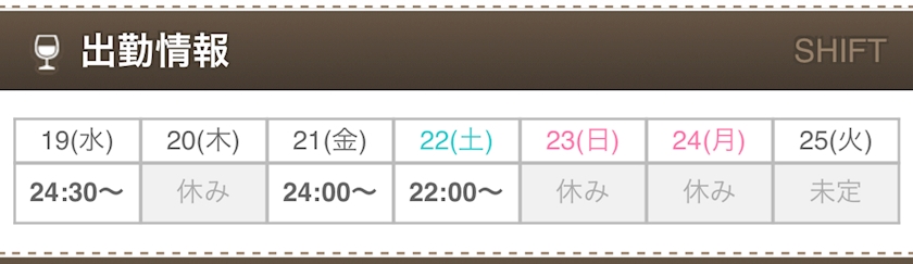 🌟今週の出勤🌟