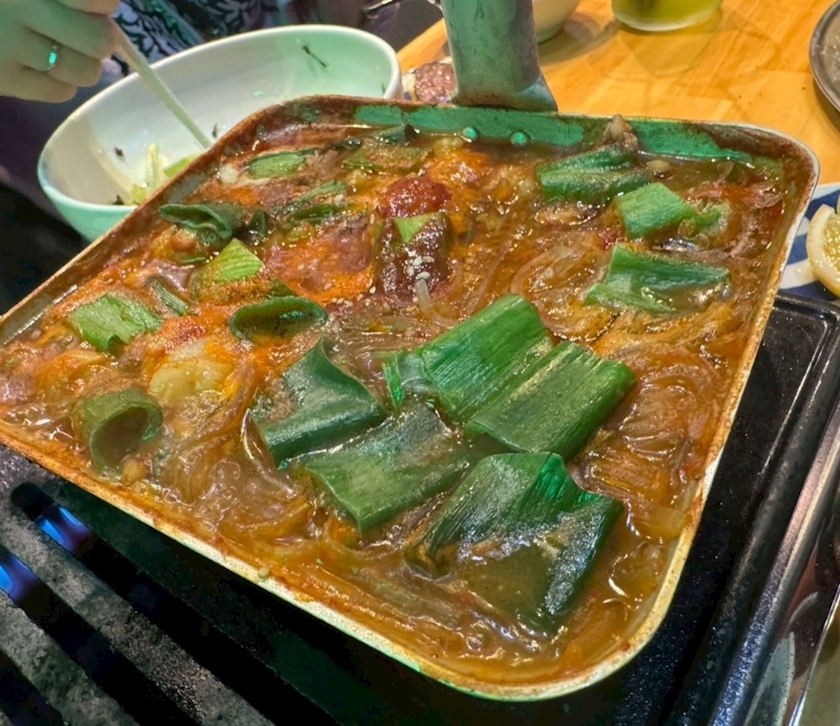 モツとタコの辛いお鍋みたいな笑