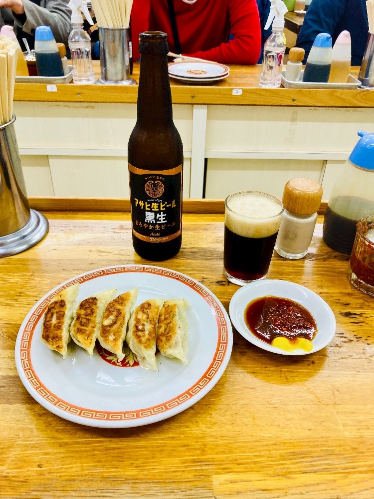 餃子と黒おビールを注文して満足満足❣️
