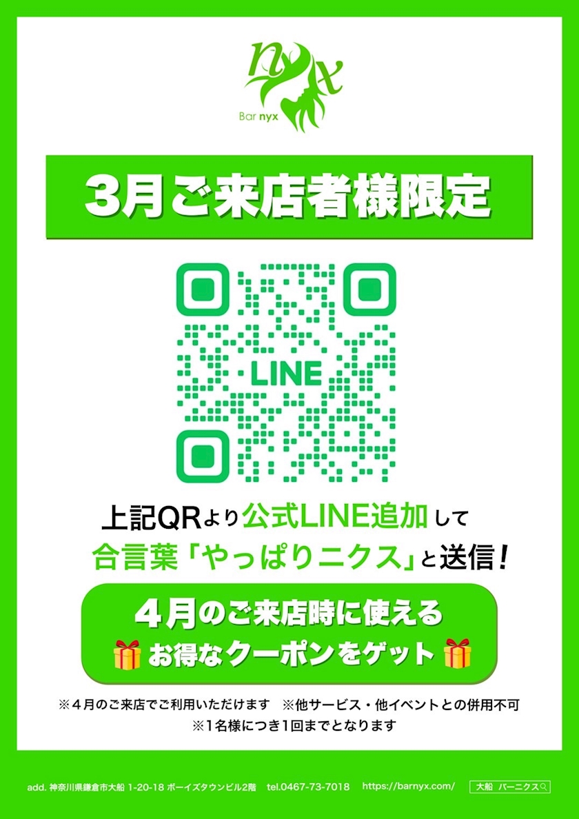 3月最週末 - Bar nyx 大船店 スタッフ - Bar nyx 大船店・ニクス - 大船のガールズバー